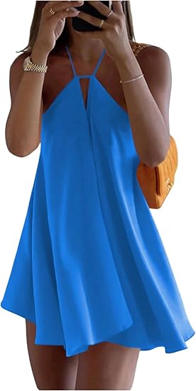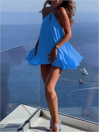 Women's Mini Dress Halter Neck Sleeveless Tie Backless Swing Flowy Beach Dresses Summer Vacation Clothes